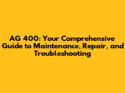 AG 400: Your Comprehensive Guide To Maintenance, Repair, And Troubleshooting