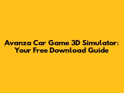 Avanza Car Game 3D Simulator: Free Download Guide