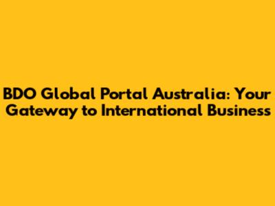 BDO Global Portal Australia: Your Gateway To International Business