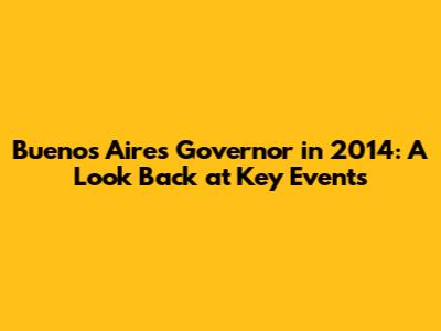 Buenos Aires Governor 2014: Key Events & Impact