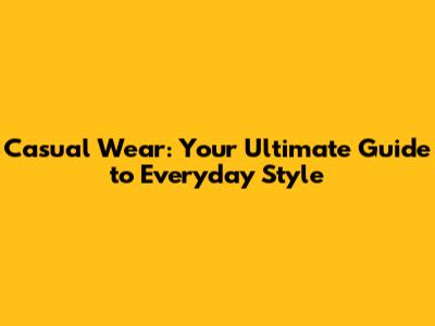 Casual Wear: Your Ultimate Guide To Everyday Style