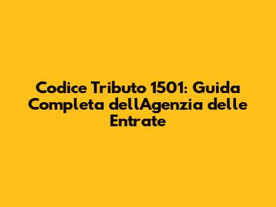 Codice Tributo 1501: Guida Agenzia Entrate