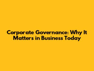 Corporate Governance: Why It Matters In Business Today