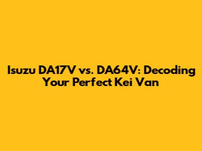 Hey there, fellow kei van enthusiasts! Are you guys currently weighing your options between the Isuzu DA17V and the Isuzu DA64V for your next ride? You're not alone! These two compact powerhouses have captured the hearts of many, offering unparalleled utility and efficiency in a tiny package. But when it comes down to the nitty-gritty of their DA17V specs versus DA64V specs, understanding the differences is absolutely key to making the right choice. This article is designed to be your ultimate guide, breaking down everything you need to know about these iconic kei vans. We're going to dive deep into their engines, interiors, safety features, and overall driving experience, helping you pinpoint which of these Japanese marvels truly aligns with your needs, whether you're hauling cargo, shuttling passengers, or just looking for a quirky daily driver. Let's face it, choosing a vehicle is a big decision, and with so many factors to consider, it can feel a bit overwhelming. But don't sweat it, because by the end of this comprehensive kei van comparison, you'll be an expert on both the DA17V and DA64V, armed with all the knowledge to confidently pick your champion. We'll be covering every angle, from the subtle design tweaks that impact functionality to the significant engineering advancements that define each model. So, buckle up, because we're about to embark on an exciting journey into the world of kei vans, ensuring you make an informed and intelligent decision about your next automotive adventure. Get ready to explore the exciting world of Isuzu DA17V and Isuzu DA64V and discover which one truly stands out for your lifestyle and demands. We're talking about more than just numbers on a spec sheet; we're talking about how these vehicles integrate into your daily life, making tasks easier and journeys more enjoyable. This detailed analysis will make sure you don't miss a single beat.