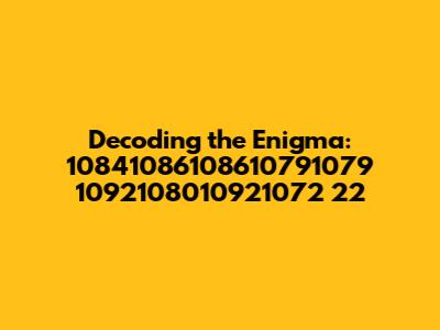 Alright, guys, let's dive headfirst into this quirky little puzzle: 10841086108610791079 1092108010921072 22. What could it possibly mean? Is it some secret code, a bizarre numerical sequence, or just a random string of characters that someone thought would be fun to throw into the digital void? Well, buckle up because we are about to embark on a journey to try and decipher this mystery! You know, when confronted with something like "10841086108610791079 1092108010921072 22," the first thing most of us do is scratch our heads and wonder if we accidentally stumbled into a parallel universe. It almost feels like a secret message from a spy movie, doesn't it? But before we start imagining ourselves as the next James Bond, let's break this down methodically. The initial reaction might be to dismiss it as gibberish, but where is the fun in that? Let’s put on our detective hats and start digging. It's essential to consider all possibilities, no matter how outlandish they might seem. Could it be a date, a coordinate, or perhaps a reference number? The possibilities are endless, and that's what makes this so intriguing. Whether it’s a technical glitch, a coded message, or an accidental string of numbers, there’s always a story waiting to be uncovered. Understanding the context is the first step. Where did this sequence appear? Was it in an email, on a website, or scrawled on a napkin you found in your pocket? The origin might give us a hint about its purpose. If it showed up in a technical document, it might be some sort of identifier or version number. If it was in a piece of creative writing, it could be a symbolic element. Let’s not rule out anything just yet. Maybe this is some kind of version number or identifier used in a software program. The number 22 at the end could signify a particular version or update. Think about how software companies often use numbers to keep track of different releases. This could be something similar, especially if you encountered this sequence in a tech-related environment. It’s a long shot, but it’s worth considering. Perhaps, it's an elaborate inside joke or a reference to something very specific. This is where things get really interesting. Maybe it's a code for a particular event or project. Or, heck, it could be a reference to a specific location or object.