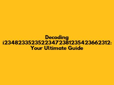 Decoding I23482335235223472381235423662312: Your Ultimate Guide