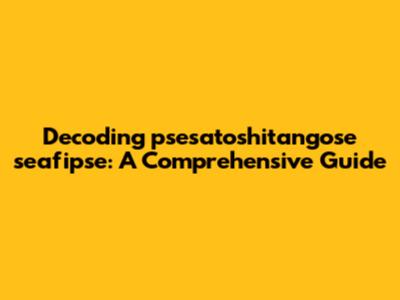 Decoding 'psesatoshitangose Seafipse': A Comprehensive Guide