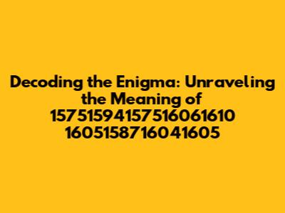 Decoding The Numbers: 15751594157516061610 1605158716041605