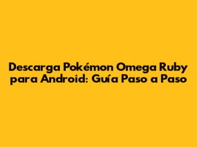 Descarga Pokémon Omega Ruby En Android: Guía Completa
