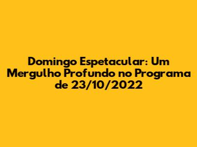 Domingo Espetacular, um dos programas de jornalismo e entretenimento mais populares do Brasil, oferece aos seus telespectadores uma mistura intrigante de notícias, reportagens especiais, entrevistas e momentos de puro entretenimento. O programa, transmitido pela Rede Record, conquistou uma base fiel de fãs ao longo dos anos, mantendo-se relevante e adaptando-se às mudanças do cenário midiático. Em 23 de outubro de 2022, o Domingo Espetacular não decepcionou, trazendo à tona uma série de matérias que agitaram o país e proporcionaram aos telespectadores informações importantes e emocionantes. Vamos mergulhar nos destaques do programa daquele dia, explorando as principais reportagens e os momentos que marcaram a edição.