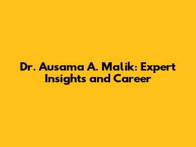 Dr. Ausama A. Malik: Expert Insights And Career