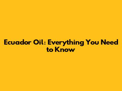 Ecuador Oil: Everything You Need To Know