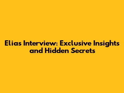 Elias Interview: Exclusive Insights And Hidden Secrets