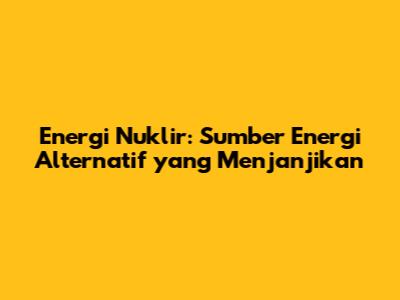 Energi nuklir adalah sumber energi alternatif yang menjanjikan, dengan potensi besar untuk memenuhi kebutuhan energi dunia. Meskipun ada tantangan terkait keamanan dan limbah nuklir, energi nuklir tetap menjadi pilihan yang menarik, terutama dalam upaya mengurangi emisi gas rumah kaca dan memastikan pasokan listrik yang stabil. Dengan pengembangan teknologi dan kebijakan yang tepat, energi nuklir dapat memainkan peran penting dalam transisi energi menuju masa depan yang lebih berkelanjutan.