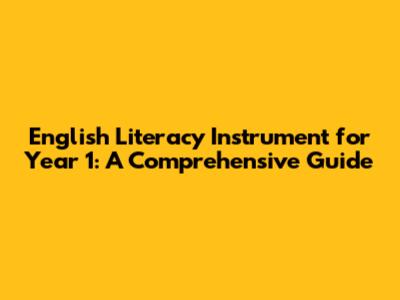 English Literacy Instrument For Year 1: A Comprehensive Guide