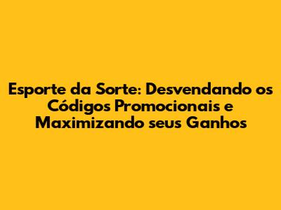 Esporte Da Sorte: Códigos Promocionais E Dicas Incríveis