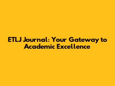 Unveiling the ETLJ Journal: What Makes it Special?