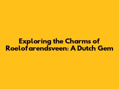 Hey guys! Ever heard of Roelofarendsveen? If not, you're in for a treat! This charming little town, nestled in the heart of the Netherlands, is a hidden gem just waiting to be discovered. I'm going to take you on a virtual tour, sharing all the cool stuff this place has to offer. So, grab a stroopwafel, maybe some bitterballen, and let's dive into the wonders of Roelofarendsveen! We'll explore its history, its culture, the local tips, and why it's a great spot for a weekend getaway or even a longer stay. Get ready to be amazed, because Roelofarendsveen is way more interesting than you might think.