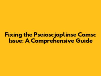 Fixing The Pseioscjoplinse Comsc Issue: A Comprehensive Guide