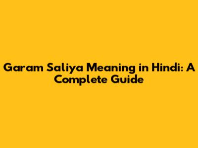 Garam Saliya Meaning In Hindi: A Complete Guide