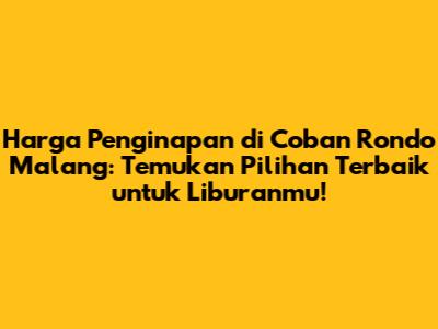 Coban Rondo, sebuah destinasi wisata alam yang memukau di Malang, Jawa Timur, memang selalu menjadi daya tarik bagi para wisatawan. Keindahan air terjunnya yang memesona, udara sejuk pegunungan, serta berbagai wahana menarik di sekitarnya, membuat Coban Rondo menjadi pilihan yang tepat untuk melepas penat dan menikmati liburan. Bagi kalian yang berencana untuk berlibur ke Coban Rondo, tentu saja informasi mengenai harga penginapan di Coban Rondo menjadi salah satu hal yang penting untuk diketahui. Artikel ini akan membahas secara lengkap mengenai berbagai pilihan penginapan di Coban Rondo, mulai dari harga, fasilitas, hingga tips memilih penginapan yang sesuai dengan kebutuhan dan budget kalian. Jadi, simak terus ya, guys!