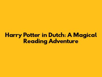 Harry Potter In Dutch: A Magical Reading Adventure