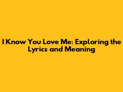I Know You Love Me Lyrics: Exploring The Song's Meaning