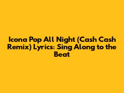 Hey music lovers! Are you ready to dive into the electrifying world of Icona Pop's "All Night" with that killer Cash Cash remix? We're talking about a track that just oozes energy, perfect for those late-night drives, dance floor sessions, or just belting it out with your besties. You know, the kind of song that makes you feel alive and invincible. So, grab your headphones, turn up the volume, and let's break down these iconic lyrics that make this radio edit a certified banger. We'll be exploring every word, every beat, and every reason why this remix has captured our hearts and ears. Get ready to sing along because this is more than just a song; it's an anthem for the night owls, the party starters, and anyone who believes in living life to the fullest, all night long. This collaboration between Icona Pop and Cash Cash has truly created something special, a perfect blend of pop sensibility and electronic mastery that keeps you hooked from the very first second. We're going to dissect the narrative, the vibe, and the sheer catchiness of this remix, making sure you don't miss a single detail. Whether you're a die-hard fan or just discovering this gem, prepare to be swept away by the infectious rhythm and unforgettable chorus. Let's get this party started, shall we?