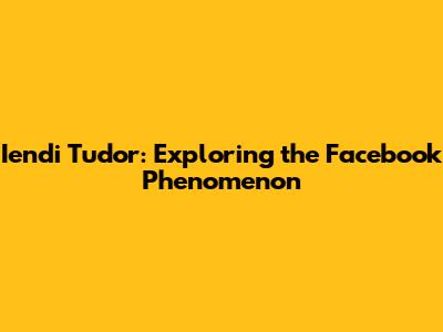 Hey guys! So, you've probably heard the name Iendi Tudor popping up, especially if you're into the online world and the ever-evolving landscape of social media. It's no secret that Facebook continues to be a dominant force, and individuals who manage to make a significant impact on the platform often pique our curiosity. Today, we're going to dive deep into who Iendi Tudor is, what makes them noteworthy on Facebook, and why their presence there matters. We'll explore their journey, their content, and the ways they've managed to connect with a broad audience. So buckle up, because we're about to unpack the phenomenon that is Iendi Tudor on Facebook.