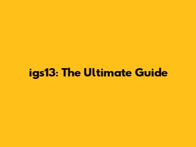 Igs13: The Ultimate Guide