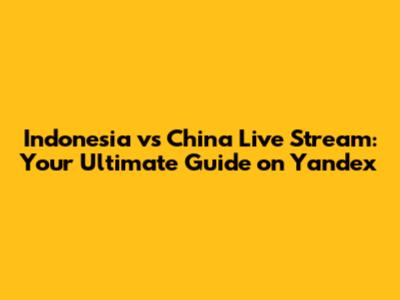 Indonesia Vs China Live Stream: Yandex Info