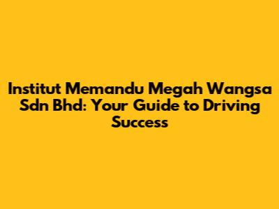 Institut Memandu Megah Wangsa: Your Guide To Driving Success