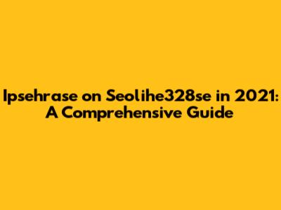 Ipsehrase On Seolihe328se In 2021: A Comprehensive Guide