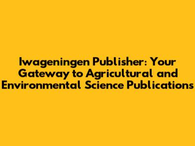 • Iwageningen Publisher is a leading publisher in agricultural and environmental sciences.
