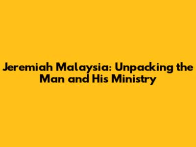 Jeremiah Malaysia: Unpacking The Man And His Ministry