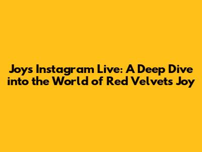 Hey everyone! 👋 If you're a ReVeluv (Red Velvet fan, for those not in the know!), you already know how awesome Joy is. Her voice, her visuals, and her overall vibe just make everything better, right? And when she hops on Instagram Live? Pure gold! This article is your go-to guide for everything Joy-related when it comes to her Instagram Live sessions. We'll cover everything from what to expect, how to watch, and why you definitely shouldn't miss out. So, grab your snacks, get comfy, and let's dive into the world of Joy's Instagram Live!