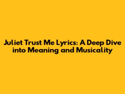 Hey music lovers! Ever gotten a song stuck in your head and just had to know what it's all about? Well, today, we're diving deep into the captivating world of "Juliet Trust Me" – exploring the lyrics, the song's context, and maybe even uncovering some hidden meanings. This song has been making waves, and for good reason! The lyrics are both poetic and relatable, the melody is catchy, and there's just something about it that grabs your attention. So, grab your headphones, get comfy, and let's unravel this musical gem together. We'll explore the song's structure, break down the individual lines, and see if we can understand the story that the artist is trying to tell. After all, isn't that what we music fans love to do? Decode the mysteries, and appreciate the art! I hope you're as excited as I am to get started. Let's start with a general overview.