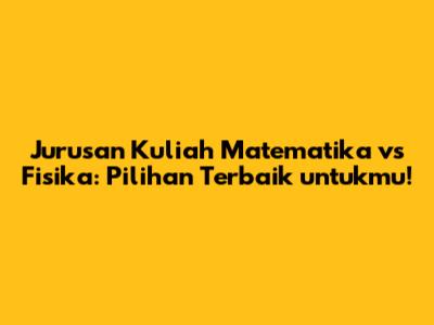 Kesimpulannya, baik jurusan kuliah matematika maupun fisika menawarkan peluang karir yang menarik dan menantang. Pilihlah jurusan yang paling sesuai dengan minat, bakat, tujuan karir, dan kemampuan kalian. Ingatlah bahwa yang terpenting adalah memilih jurusan yang kalian sukai dan yang membuat kalian bersemangat untuk belajar dan berkembang.