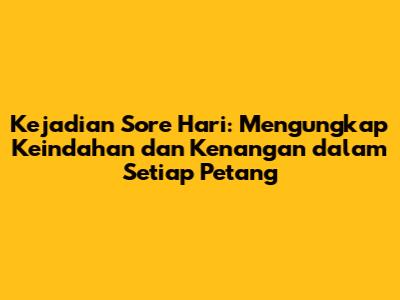 Kejadian sore hari adalah momen matahari terbenam yang penuh dengan keindahan, kenangan, dan potensi. Dari peristiwa petang sehari-hari hingga cerita akhir pekan yang tak terlupakan, pengalaman senja ini memberikan kesempatan untuk bersantai, merenung, dan mempererat hubungan dengan orang-orang terdekat. Dengan memperhatikan suasana sore, menikmati aktivitas menjelang malam, dan mengabadikan kenangan waktu senja, kita dapat menciptakan kehidupan yang lebih bermakna dan bahagia. Jadi, luangkan waktu untuk menikmati kejadian sore hari, dan biarkan momen-momen indah ini menjadi bagian tak terpisahkan dari hidup Anda.