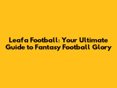 Leafa Football: Your Ultimate Guide To Fantasy Football Glory