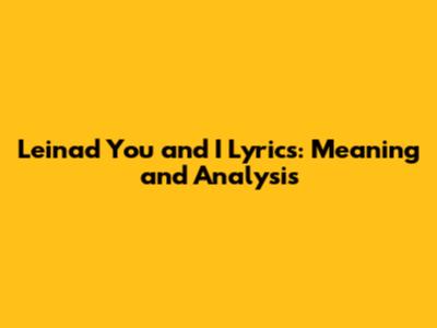 Leinad You And I Lyrics: Meaning And Analysis