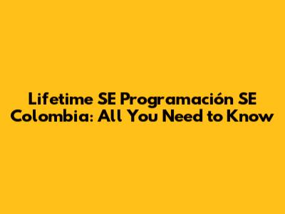 Lifetime SE Programación SE Colombia: All You Need To Know
