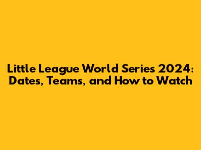 Little League World Series 2024: Dates, Teams, And How To Watch