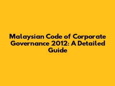 Malaysian Code Of Corporate Governance 2012: A Detailed Guide