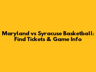 Maryland Vs Syracuse Basketball: Find Tickets & Game Info