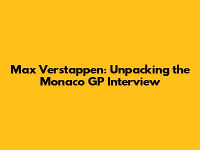 Max Verstappen: Monaco GP Interview Insights