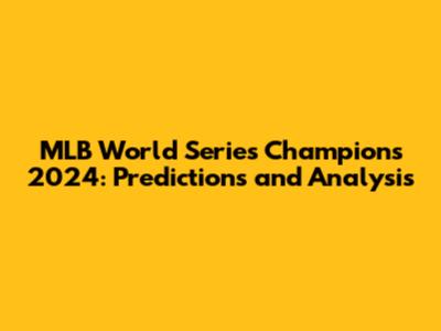 MLB World Series Champions 2024: Predictions And Analysis