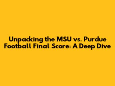 Alright guys, let's talk football! We're diving deep into the Michigan State vs. Purdue football game and, more importantly, what the final score was. It was a game that had fans on the edge of their seats, with twists and turns that made it a classic Big Ten matchup. Whether you're a die-hard Spartans fan, a loyal Boilermakers supporter, or just a neutral observer who loves a good game, understanding the final score is key to appreciating the narrative of the day. We'll break down the key moments, the standout performances, and how those crucial plays ultimately shaped the outcome. So, grab your favorite team's jersey, settle in, and let's dissect this thrilling contest. This isn't just about numbers; it's about the strategies, the momentum shifts, and the sheer grit displayed by both teams. Get ready for an in-depth look at how Michigan State and Purdue battled it out on the gridiron, culminating in a definitive final score that will be remembered by fans for seasons to come. We're going to explore the implications of this result for both programs and what it means moving forward in their respective seasons.