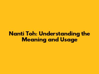 Nanti Toh: Understanding The Meaning And Usage