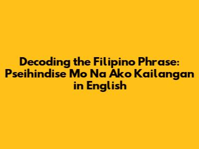 Hey guys! Ever stumble upon a phrase in a language you don't know and just… scratch your head? That's totally relatable! Today, we're diving into a common Filipino phrase: "Pseihindise mo na ako kailangan." We'll break it down, translate it, and make sure you understand what it means. It's like a mini-language lesson, and trust me, it's gonna be a fun ride. The translation may also vary depending on the context in which it is used. So let's get started. Getting this right is super important, especially if you're trying to communicate effectively or maybe even just trying to understand a Filipino friend or a loved one. So, buckle up; we are about to decode it! This particular phrase is pretty common, and knowing it can open up a whole new world of understanding. Let's not waste any more time, let's learn how to translate this phrase!
